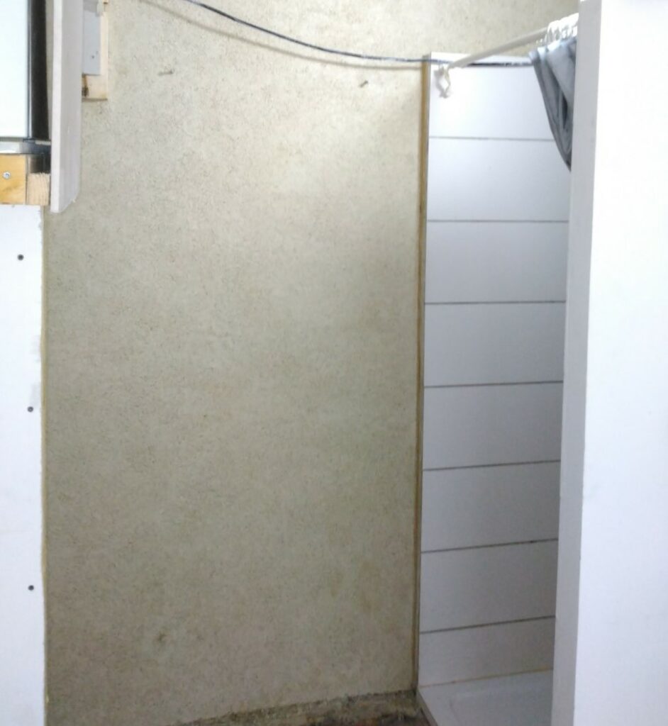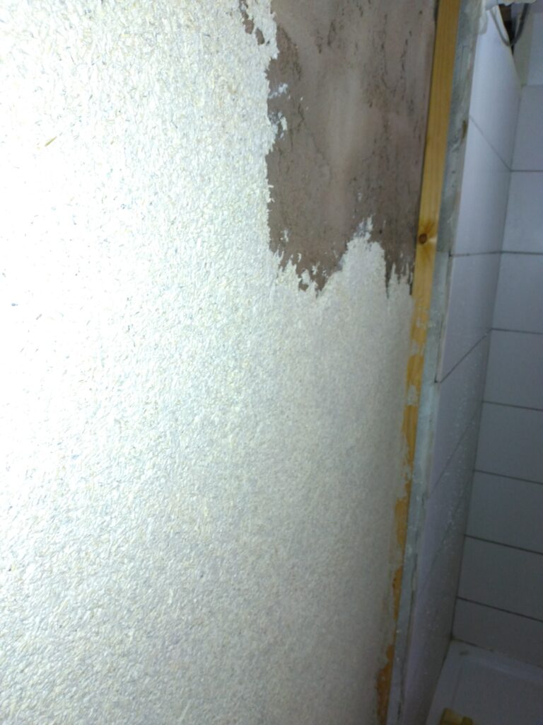 Enduit correcteur thermique chaux/chanvre dans une salle de bain appliqué à la main finition taloché