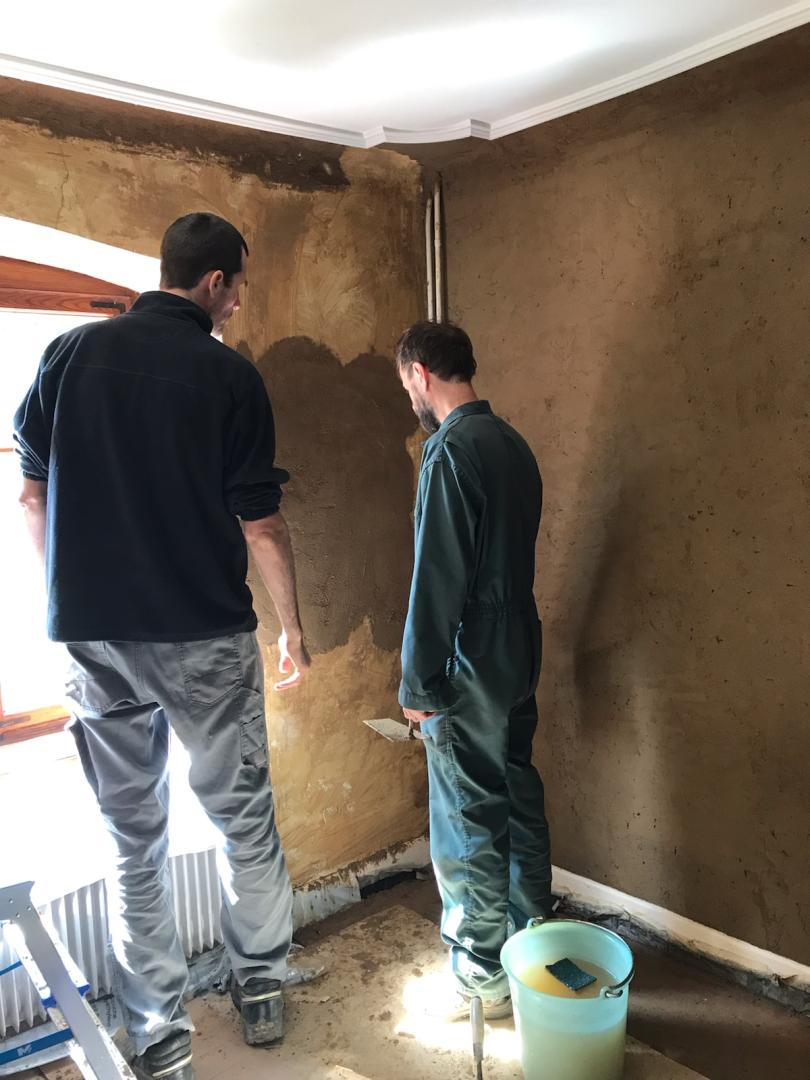 Formation de 2 jours pour que le propriétaire de la maison acquiert une autonomie dans la réalisation d’enduit terre tout aussi bien dans la préparation des mélanges que dans l’application.