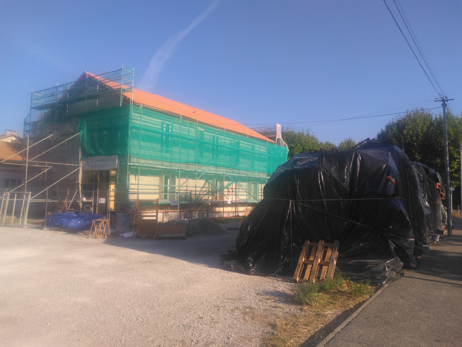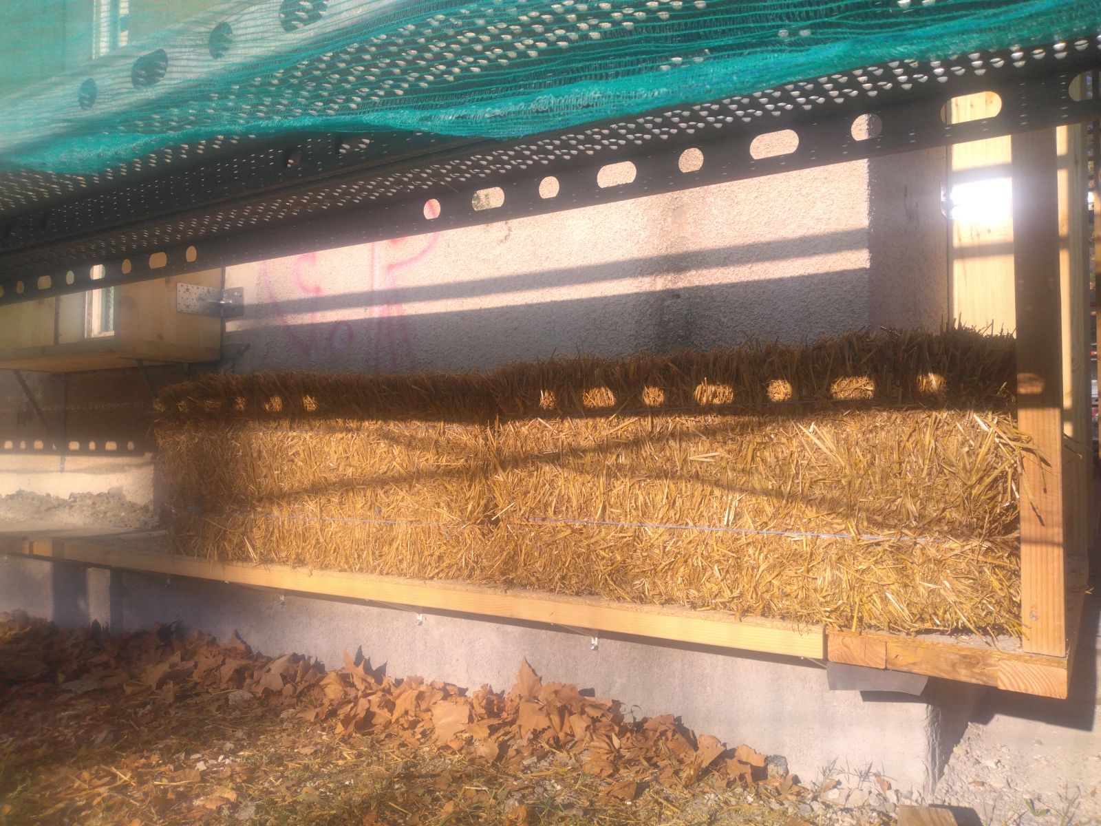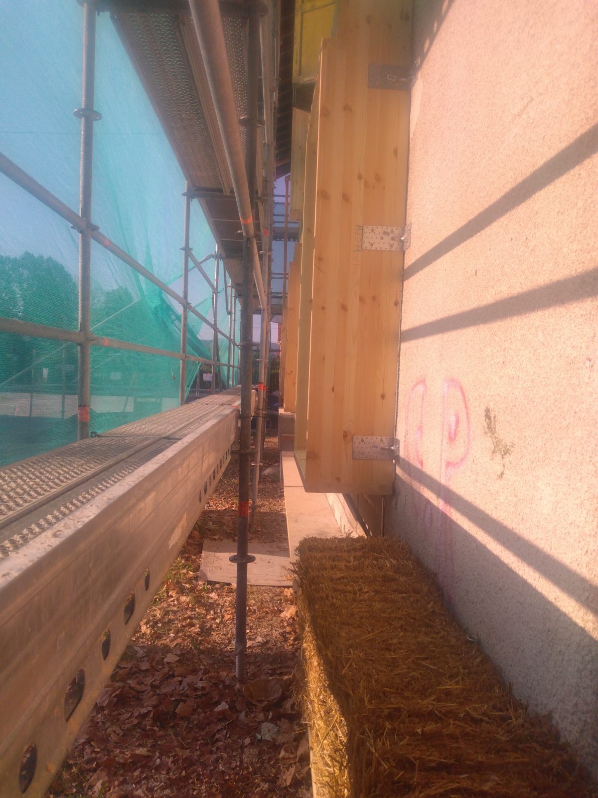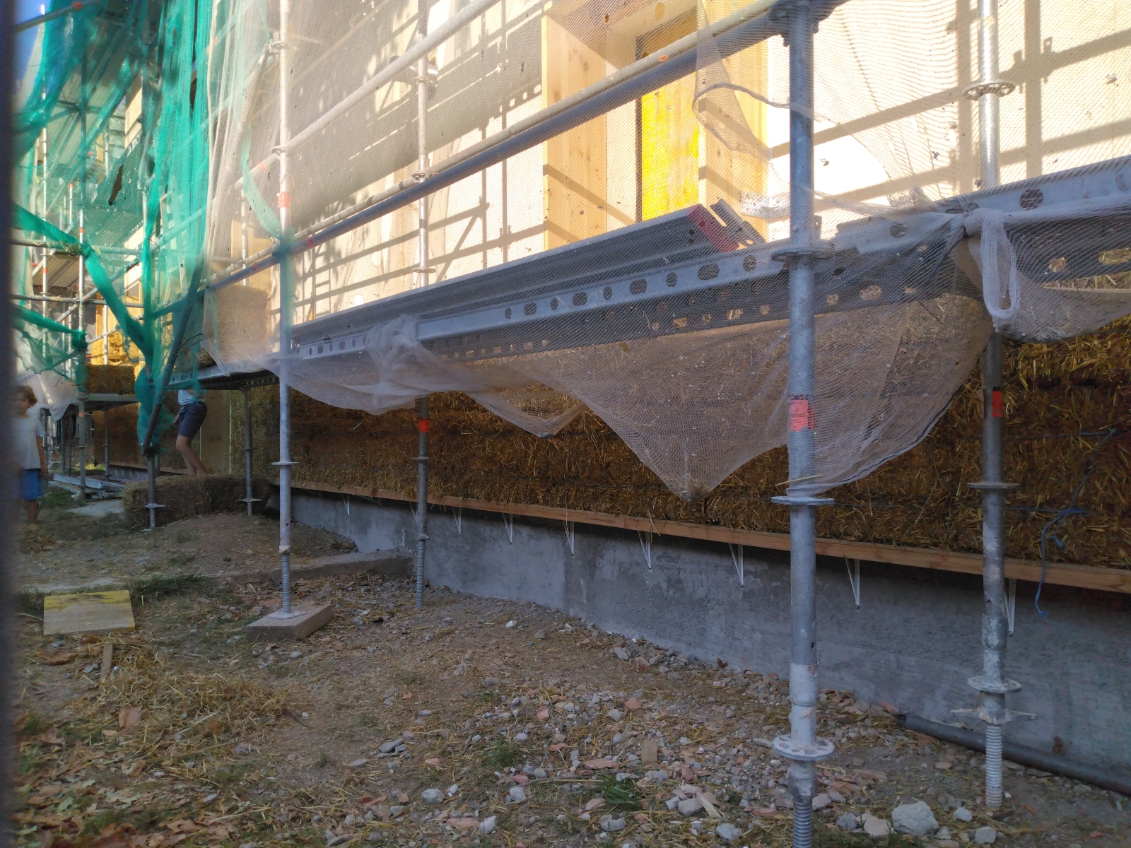 Chantier d’isolation extérieure en bottes de paille à Château-Arnoux-Saint-auban (04150).