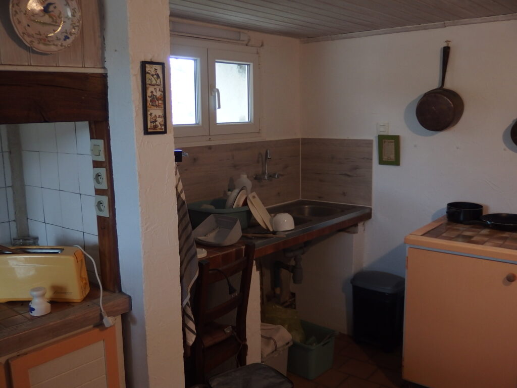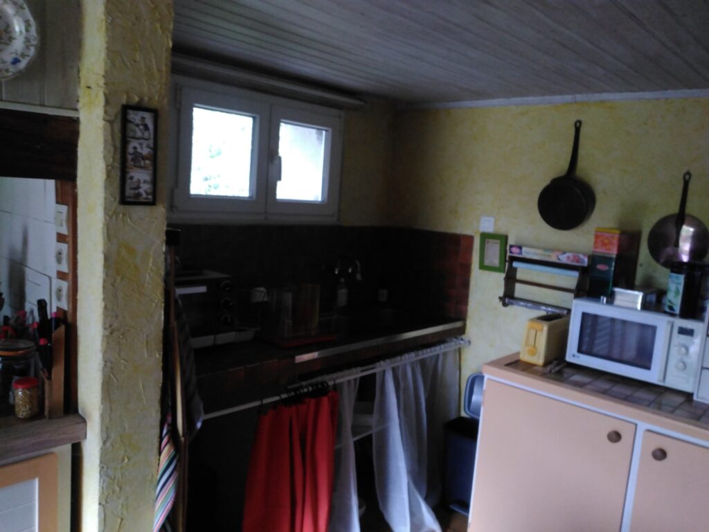 Lessivage des murs, peinture naturelle sur les murs, enlèvement de l’ancienne crédence en carreaux, pose d’une nouvelle crédence aspect bois…