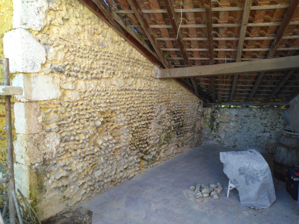 Petites reprises de maçonnerie et rejointement de murs en galets avec de la chaux.
